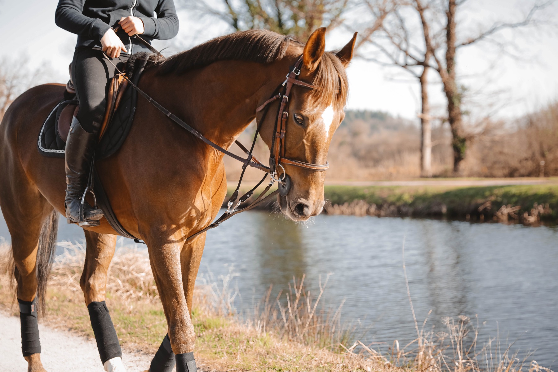 Les rênes allemandes sont délicates d’utilisation, mais très à la mode ! Elles partent de la main du cavalier, coulissent dans l’anneau du mors et se fixent à la sangle : soit sur les côtés, soit entre les antérieurs.